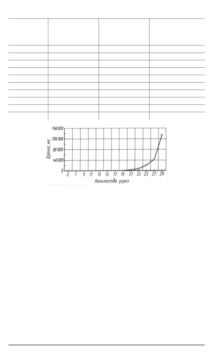 доемкости алгоритма метода вектора спада от числа угроз.