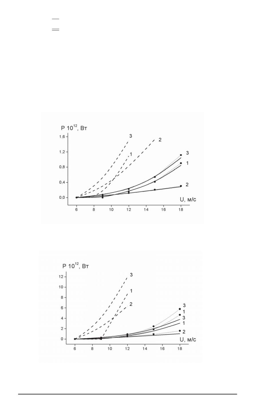 Графики зависимости принимаемой мощности от скорости ветра при